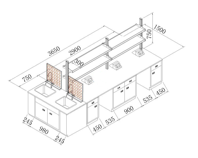 2)理化贴面板采用25mm厚的国产优质环保型中纤板为基材,表面粘压耐酸碱的进口0.9mm厚Chemsurf理化板,台面四周断面经国产优质2.0mm厚PVC封边防水处理,外表美观、光滑。