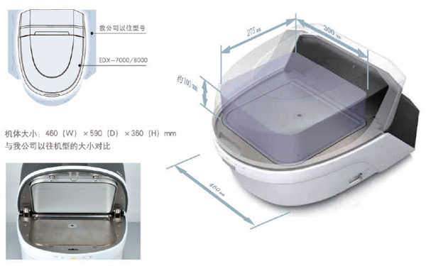 而紧凑的机身,却拥有最大可放置200(W)×275(D)×约100(H)mm样品的大型样品室。