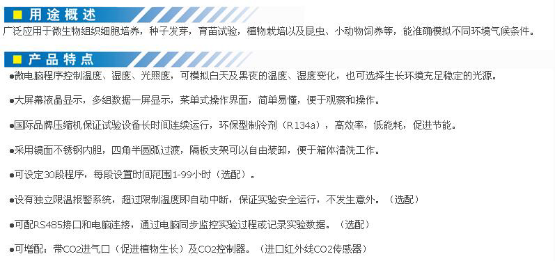 广泛应用于微生物组织细胞培养,种子发芽,育苗试验,植物栽培以及昆虫、小动物饲养等, 能准确模拟不同环境气候条件。