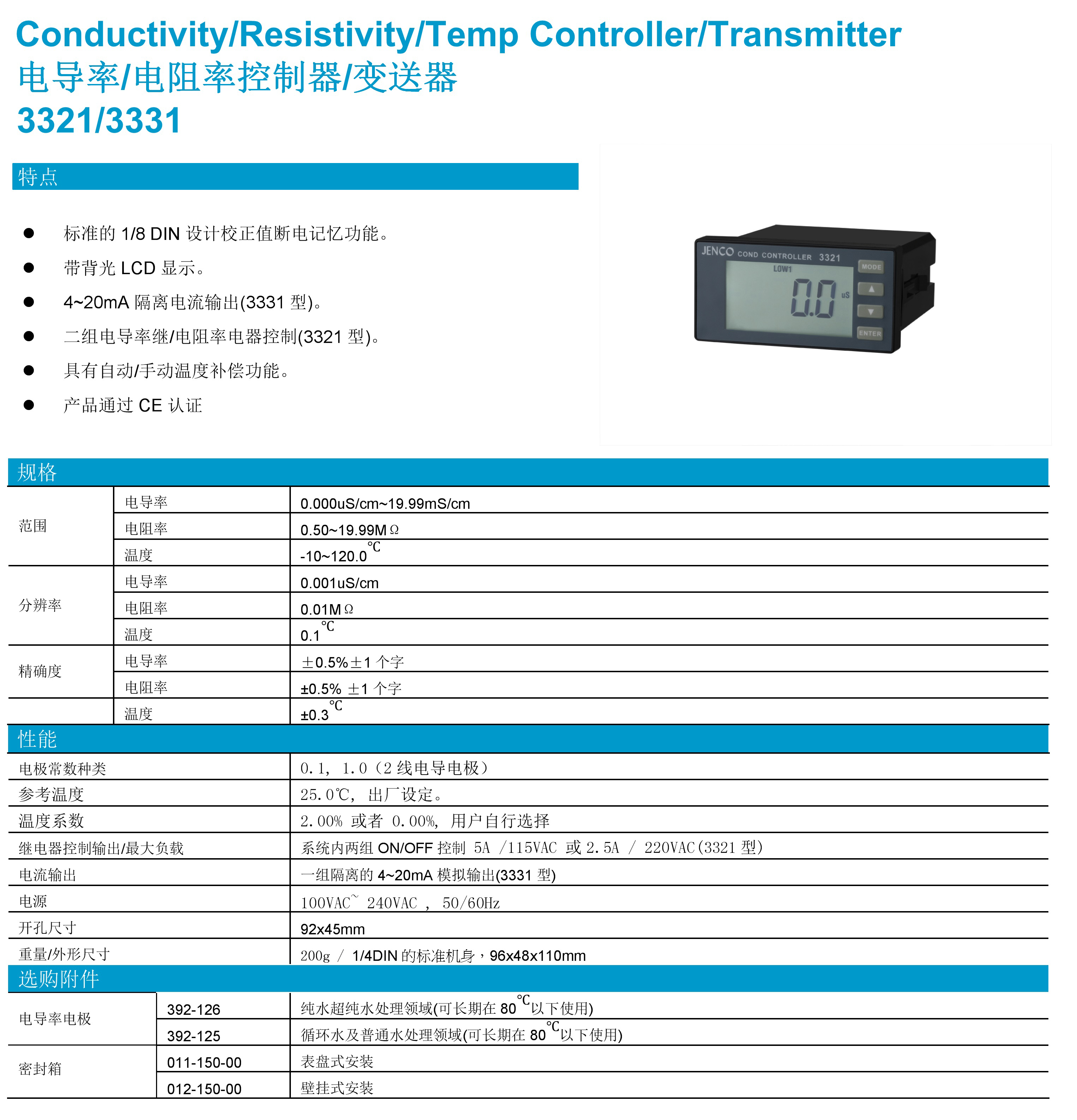 下一页:EC/TDS/Salinity/Temp 便携式电导率/固体总溶解量/盐度/温度测量仪 3250