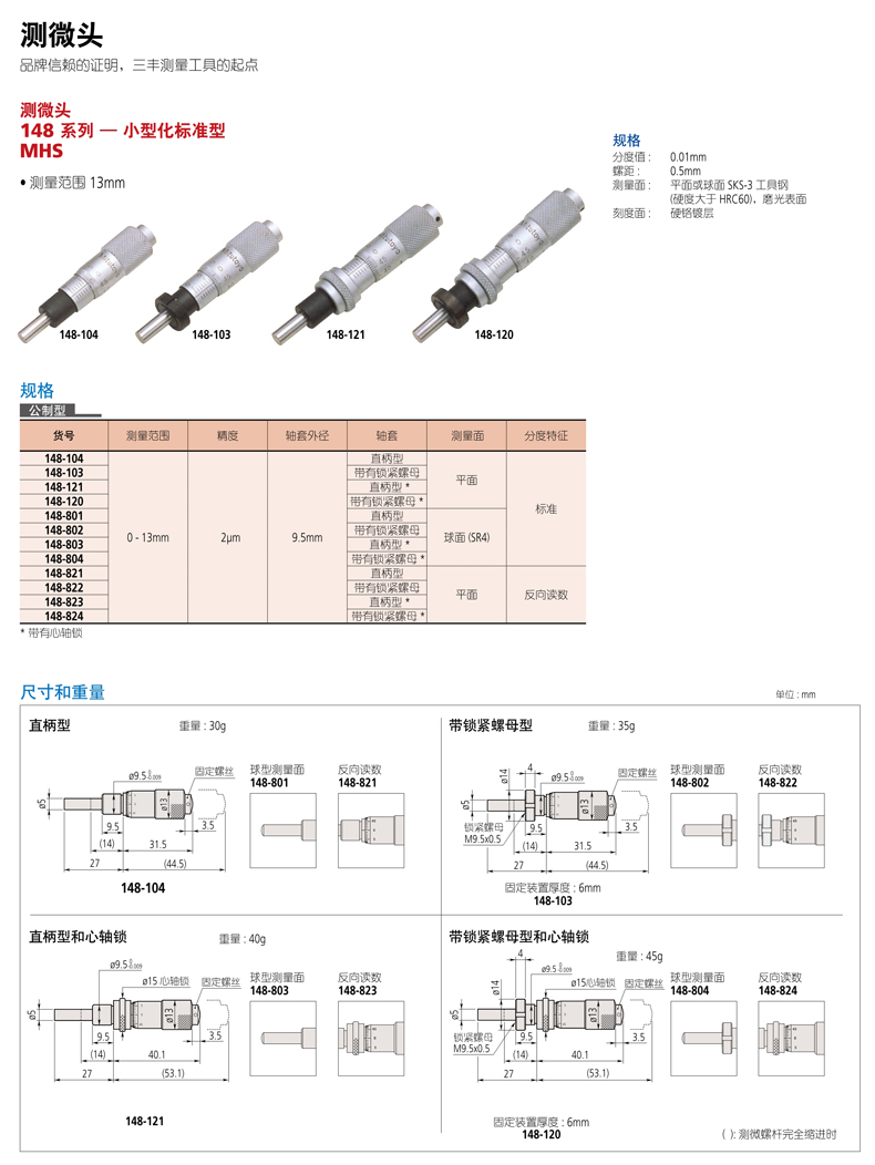 下一页:日本Mitutoyo三丰测微头148系列 — 带有可调零微分筒的小型化标准型MHA