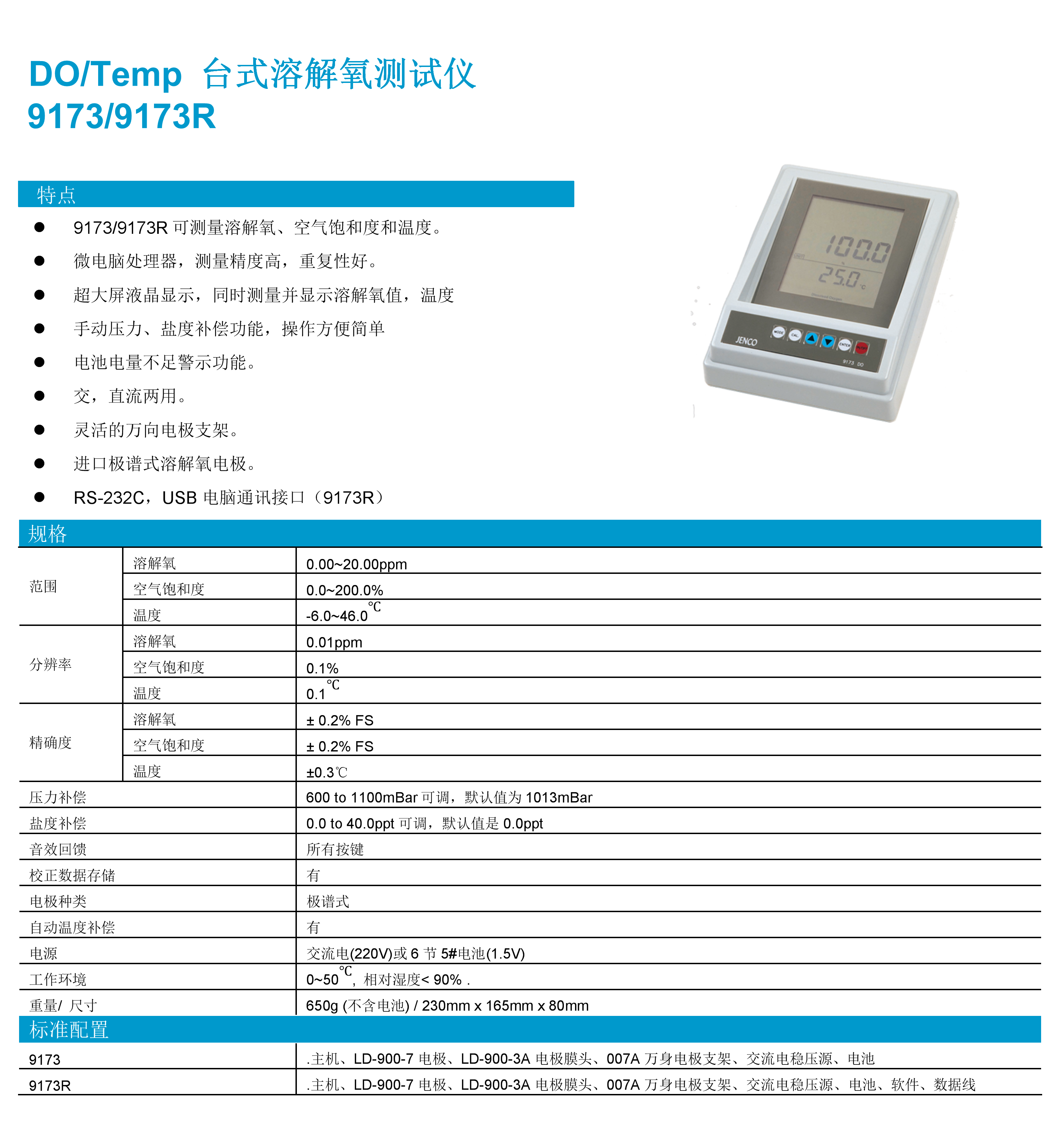 > DO/Temp 台式溶解氧测试仪 9173/9173R