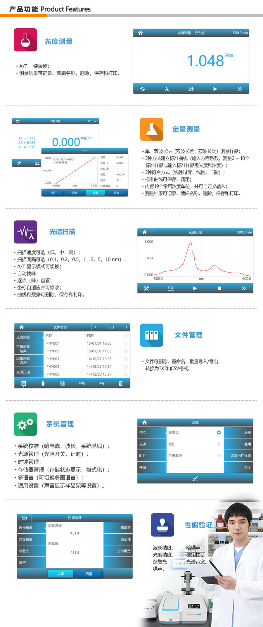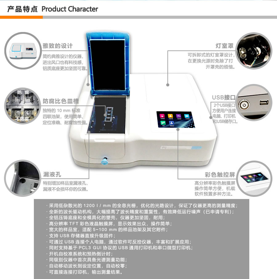 P3 单光束 紫外可见分光光度计。通过简单的参数设定,方便地进行光度分析、定量分析、动力学测试,配合专业的Mapada的扫描分析软件,可实现全波长光谱扫描、多波长测试。