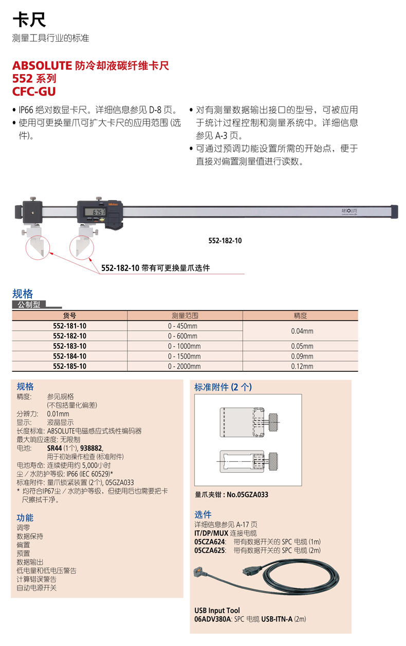 下一页:日本三丰mitutoyoABSOLUTE 防冷却液碳纤维卡尺552 系列CFC-GC