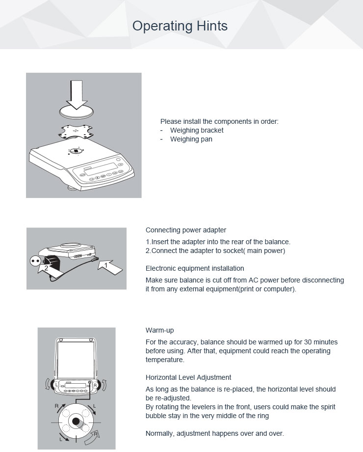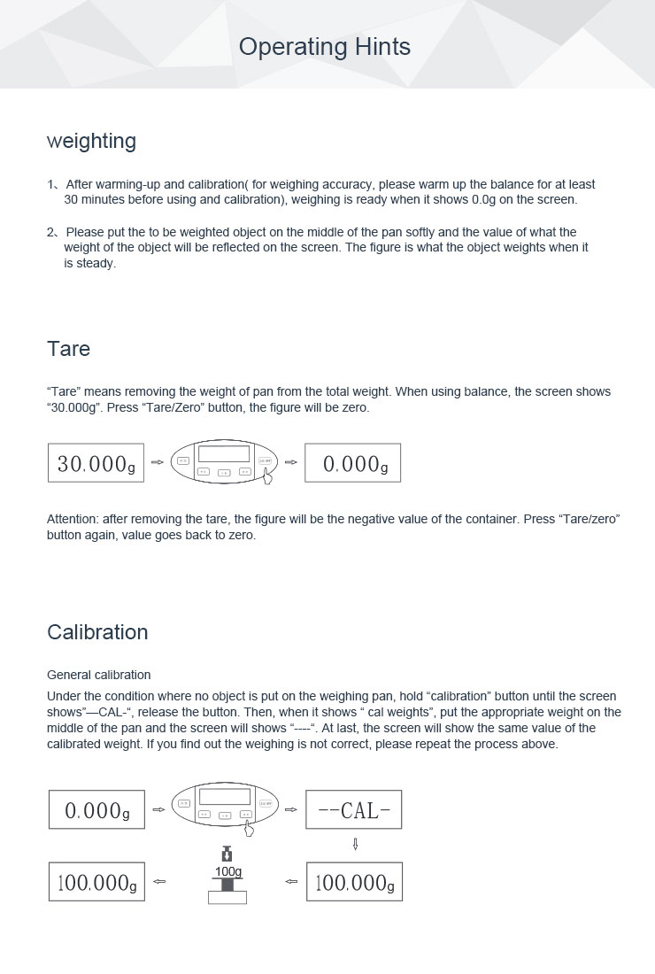 Weighing range indication, LCD display.