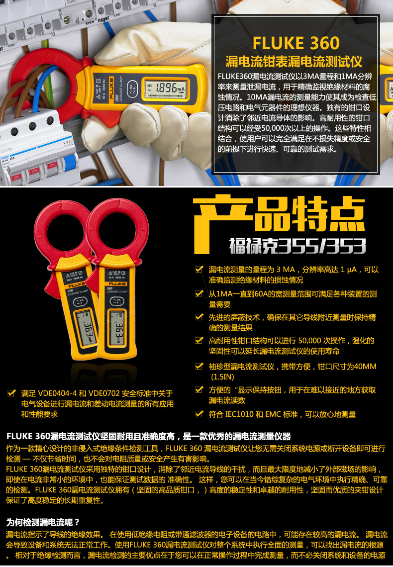 福禄克FLUKE F360漏电流钳表漏电流测试仪
