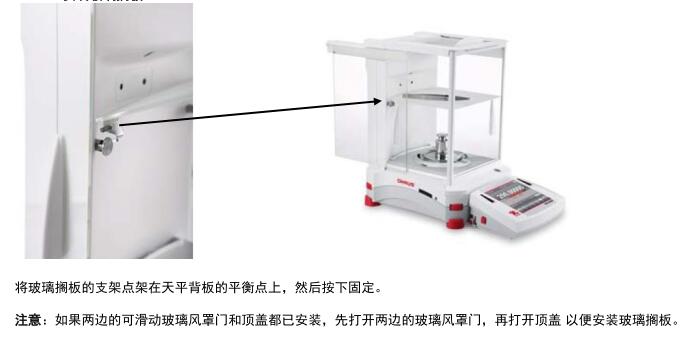 参见以下图标和说明指示,把 Explorer 准微量电子天平的部件组装起来。在使用电子天平之前,必须组装所有部件。