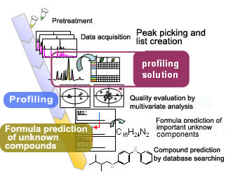 轮廓解决方案软件自动按保留时间将由LCMS-IT-TOF质谱仪获得的高准确性数据排列,并生成可以用于商业多变量分析软件的列表(矩阵)。这大大减少峰值获取和列表创建的工作量,由于大量的数据点和样品组分,这个过程可能需要一段相当长的时间。