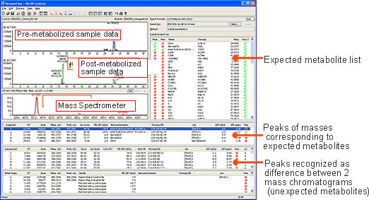 通过比较代谢前、后的XIC (精确质量)色谱,并对母药和代谢物的MSn 谱使用多变量分析这个系统可以让哪些即使不熟悉代谢研究分析人员都能自动提取候选代谢物,从而有效提高实验室整体效能。