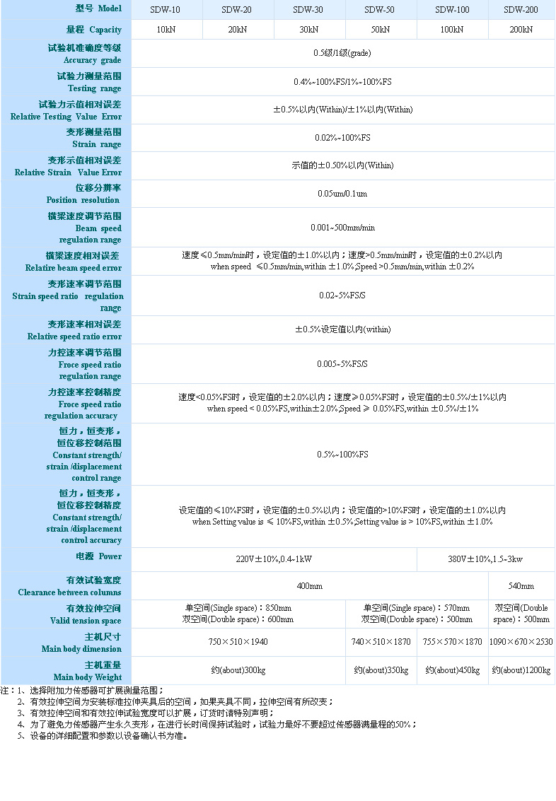 SDW系列微机控制电子万能试验机是电子技术与机械传动相结合的新型材料试验机,具有准确的加载速度和测力范围,对载荷、变形、位移的测量和控制有较高的精度和灵敏度。主要适用于金属、非金属试样的拉伸、压缩、弯曲、剪切等试验。