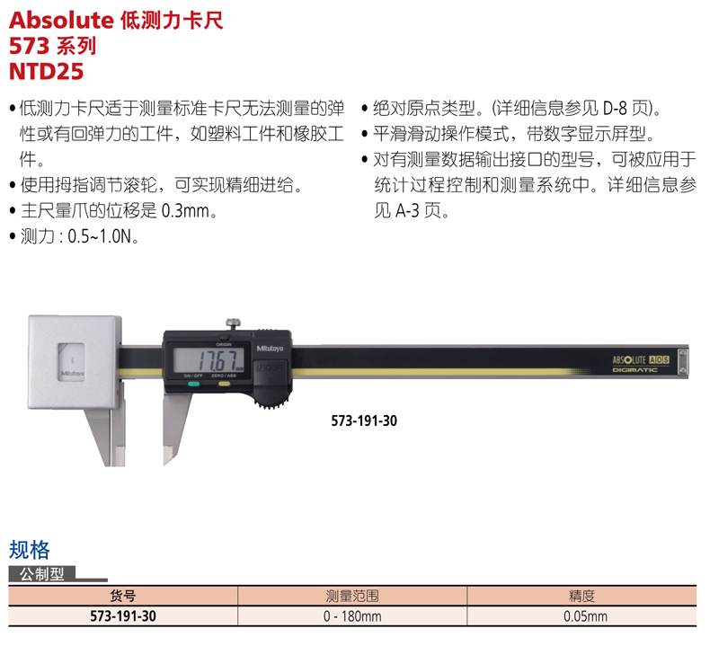 下一页:日本Mitutoyo三丰薄片卡尺573, 536 系列 — ABSOLUTE 数显型和游标型NTD13 · NT13