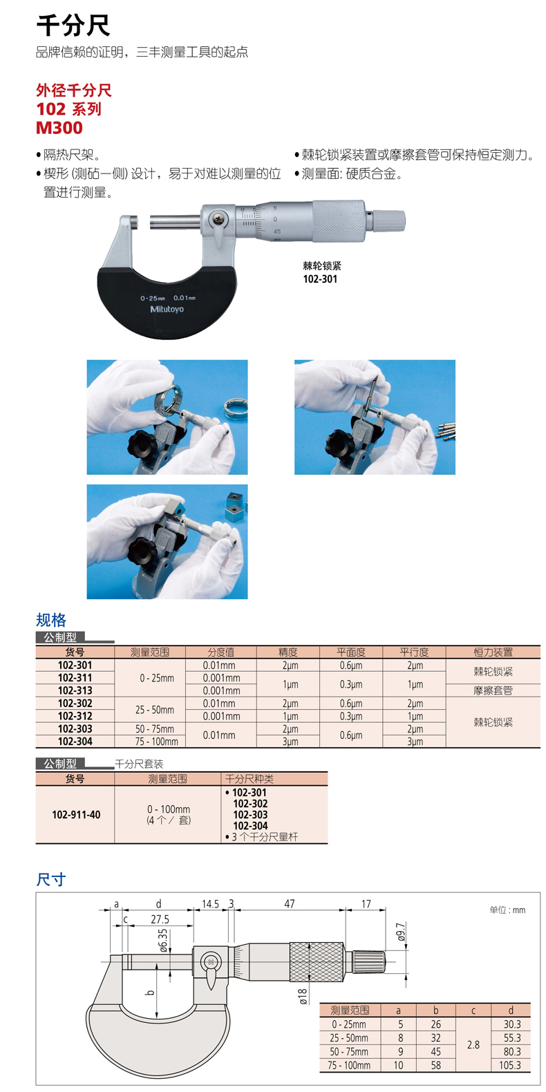 上一页:日本三丰mitutoyo外径千分尺105系列—带有测砧接长套管OMS