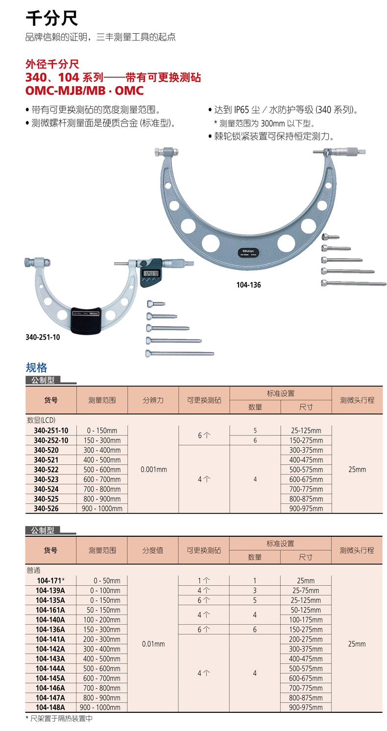 上一页:日本三丰mitutoyo外径千分尺105系列—带有测砧接长套管OMS1-P · OMS2-P
