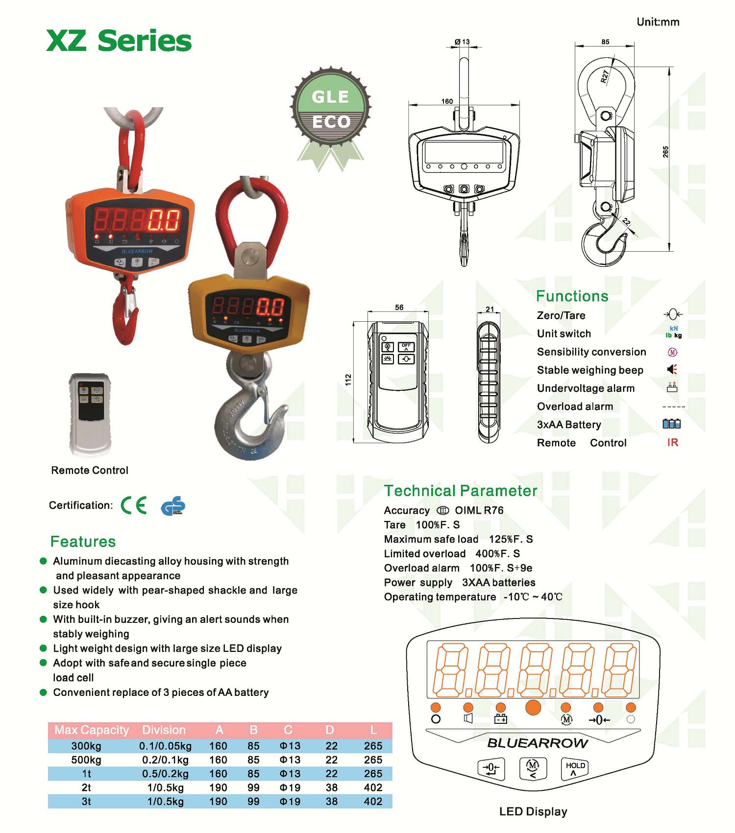 Capacity: 300kg,500kg,1t,2t,3t