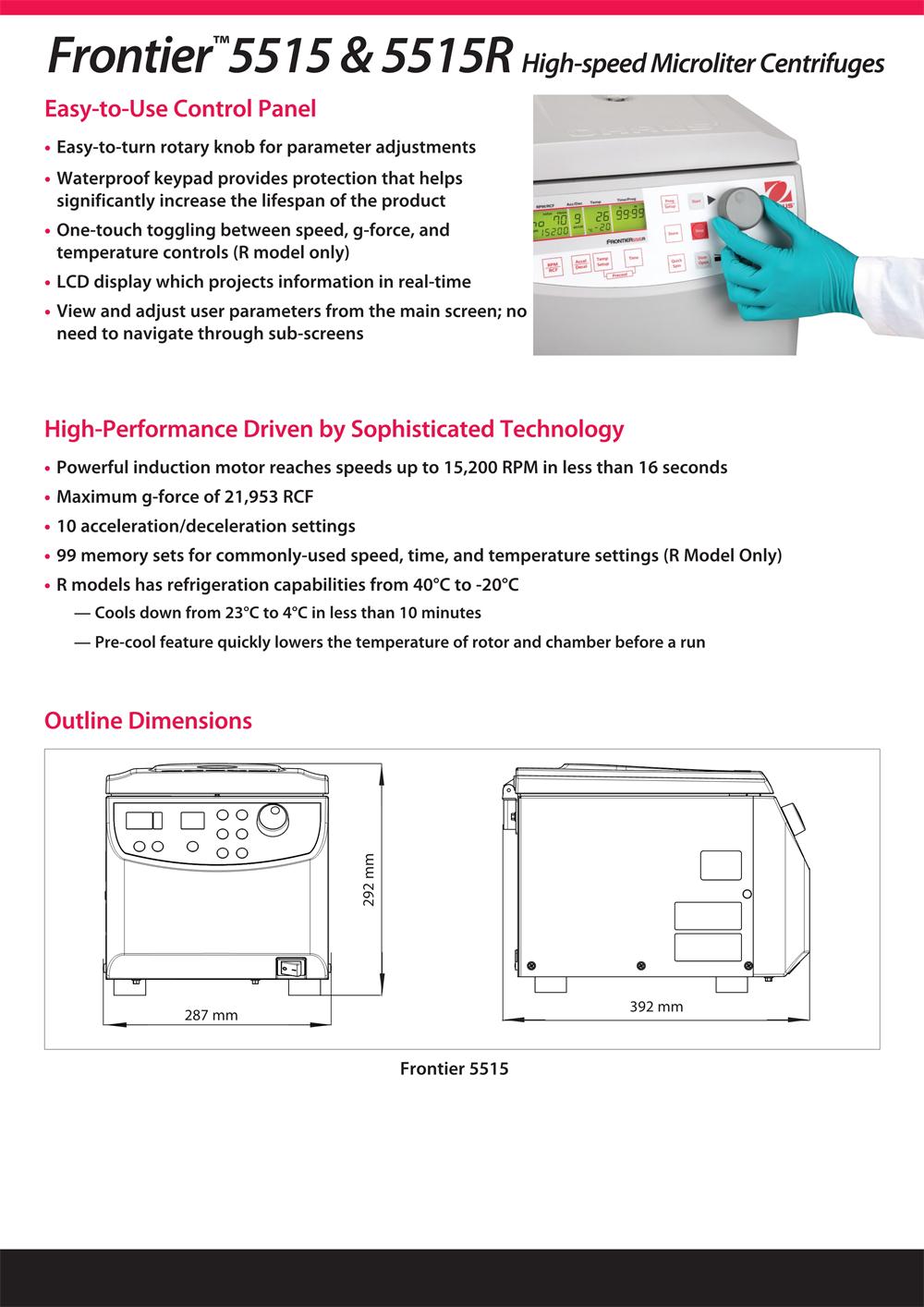 > Ohaus Frontier 5515 & 5515R High-Speed Microliter Centrifuges